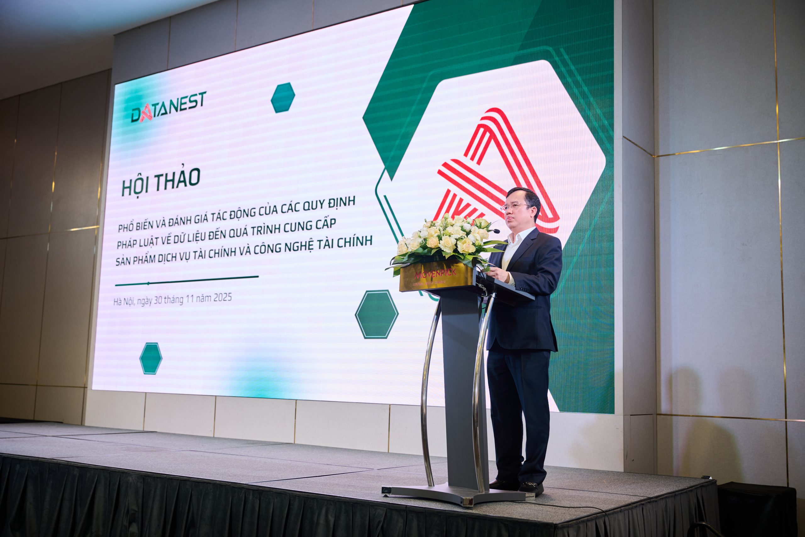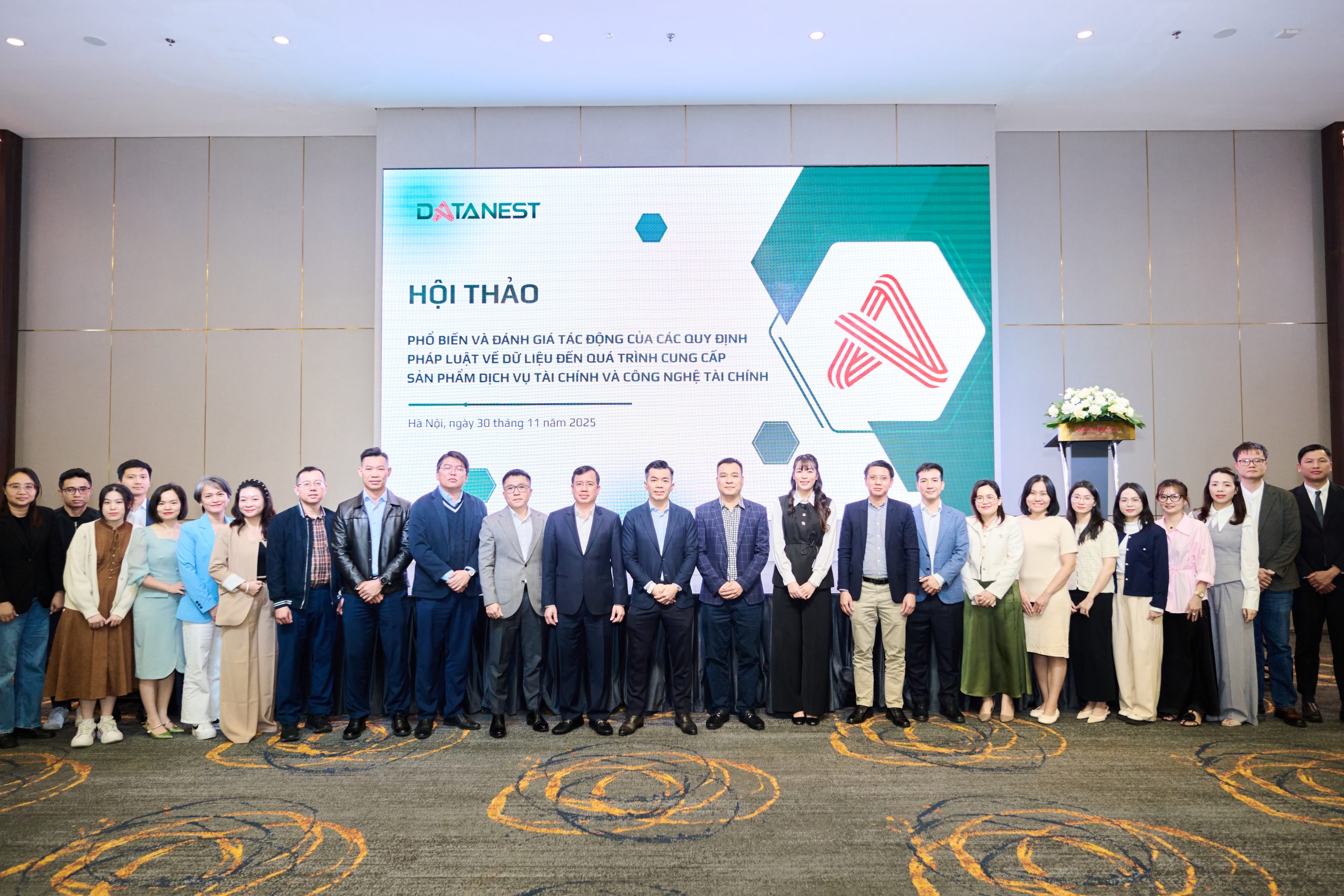 Ngày 30/11/2025, Data Nest đã chủ trì tổ chức hội thảo “Phổ biến và đánh giá tác động của các quy định pháp luật về dữ liệu đến quá trình cung cấp sản phẩm, dịch vụ tài chính và công nghệ tài chính” tại Hà Nội, với sự tham dự của Trung tâm Dữ liệu quốc gia – đại diện là Đại tá Nguyễn Thành Vĩnh, Phó Giám đốc – cùng các đối tác trong lĩnh vực tài chính như Vietcombank, Techcombank, Home Credit, Mirae Asset… Tại sự kiện, đại diện Trung tâm Dữ liệu quốc gia đã chia sẻ về các chủ trương của Nhà nước đối với chuyển đổi số, đổi mới sáng tạo và Đề án 06, đồng thời nhấn mạnh vai trò của dữ liệu “đúng – đủ – sạch – sống – an toàn – hiệu quả” trong việc tăng cường định danh, xác thực điện tử, giảm gian lận, nâng cao minh bạch và thúc đẩy hình thành các sản phẩm tài chính thông minh, cá nhân hóa.